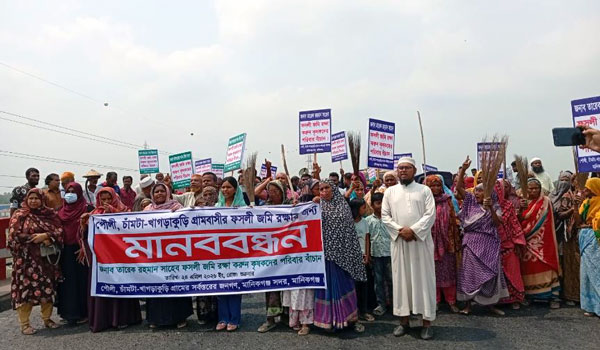 মানিকগঞ্জে মাটি খেকোদের থাবা থেকে ফসলি জমি রক্ষায় কৃষকদের মানববন্ধন ও বিক্ষোভ
