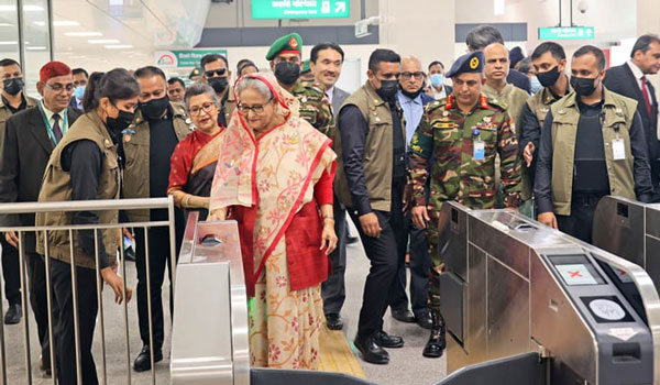আনলাইন ডেস্ক: স্বপ্নের মেট্রোরেলে চড়ে মাত্র ১৭ মিনিটে উত্তরা থেকে আগারগাঁওয়ে পৌঁছালেন প্রধানমন্ত্রী শেখ হাসিনা। বহুল প্রতীক্ষিত এ উড়াল ট্রেনে প্রধানমন্ত্রীর ভ্রমণসঙ্গী ছিলেন দুই শতাধিক যাত্রী। এর মধ্যে প্রধানমন্ত্রীর ছোট বোন শেখ রেহানা, সড়ক পরিবহন ও সেতুমন্ত্রী ওবায়দুল কাদের ছাড়াও সরকারের বিভিন্ন পদস্থ ব্যক্তি এবং নানা শ্রেণি-পেশার মানুষ ছিলেন।