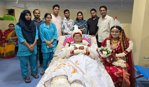 নিজস্ব প্রতিবেদক: ভালবাসার মানুষের পাশে থেকে সেবা করতেই হাতে পায়ে ব্যান্ডেজ নিয়ে আহত অবস্থায় হাসপাতালের বেডে শুয়ে থাকা আনন্দ সাহাকে বিয়ে করলেন অমরিতা ।ধর্মীয় রীতিনীতি